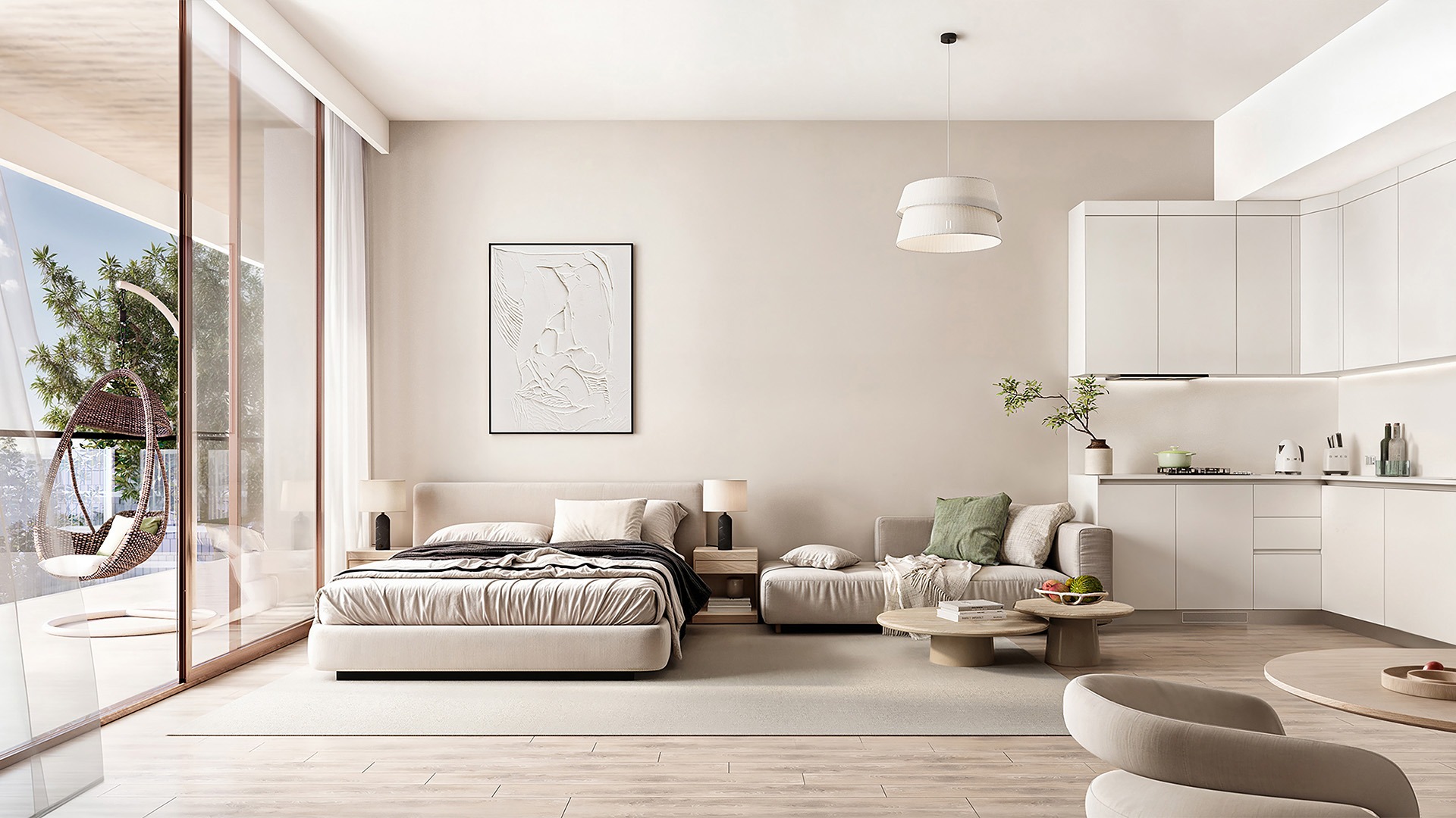 Set beside the expansive Arjan Community Park, the project offers a calm, walkable environment with easy access to city life. Apartments range from studios to spacious three-bedroom residences, each featuring open-plan interiors, floor-to-ceiling windows, and refined finishes.