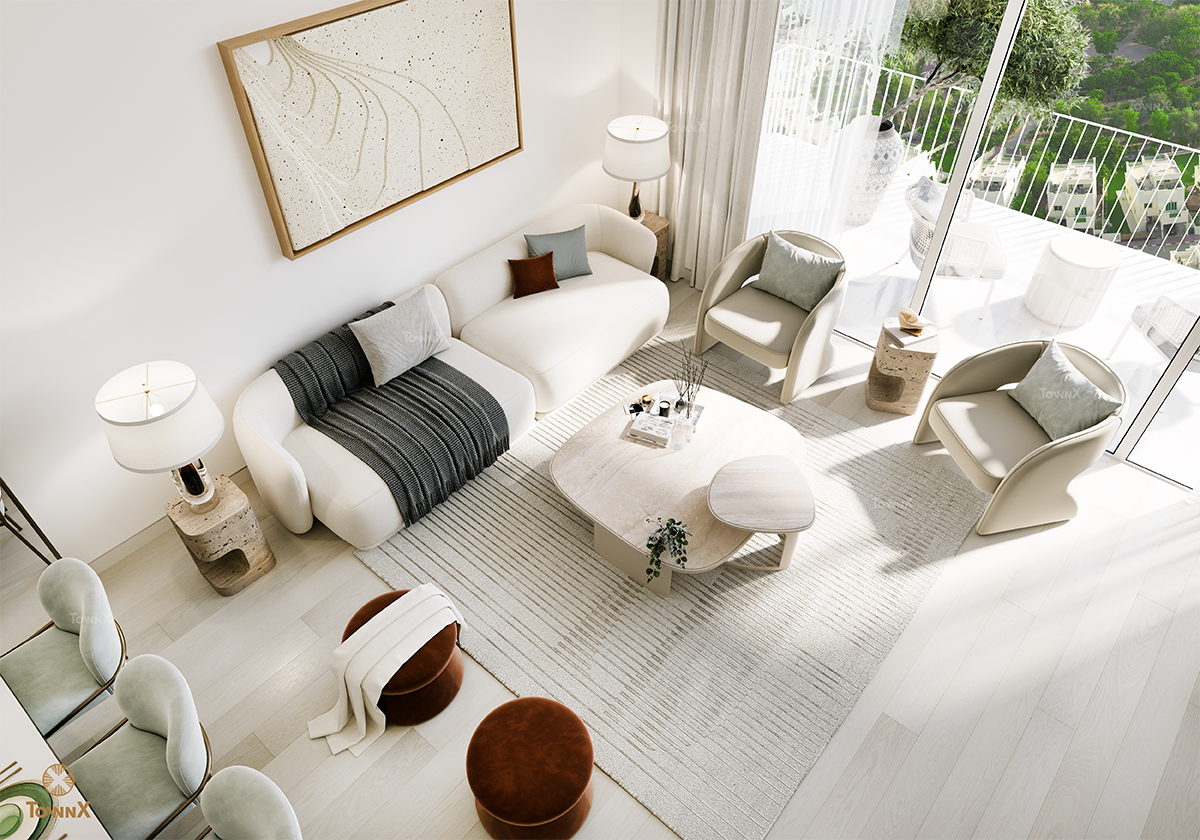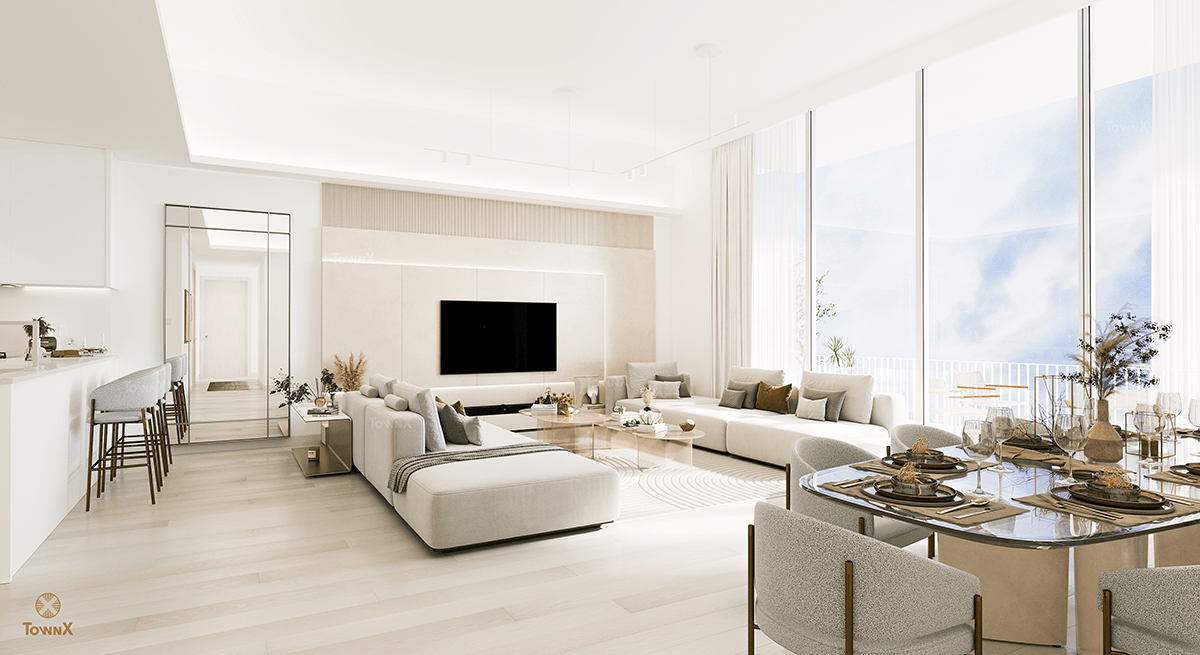 Interiors balance clean architecture with natural light, open layouts and refined finishes. Floor-to-ceiling windows frame calming views while maximizing space and comfort.